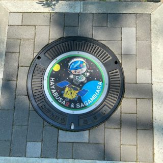 はやぶさ2 マンホール Manhole 2022.05.262022.05.31 〈はやぶさ2関連事業〉特製マンホール蓋を設置【淵野辺駅南口駅前広場・市立博物館入口】 – 神奈川・東京多摩のご近所情報 – レアリア