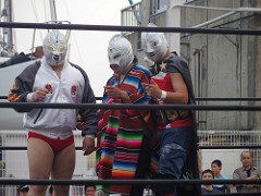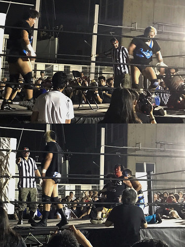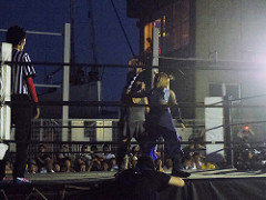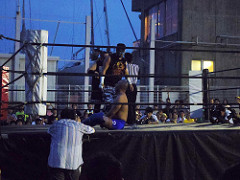 高杉Jrの方はマイティ井上タイプのサンセットフリップなど、いまどきなかなか見られない技を。国際っぽい。