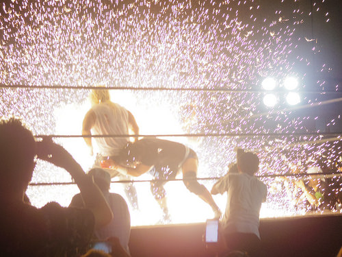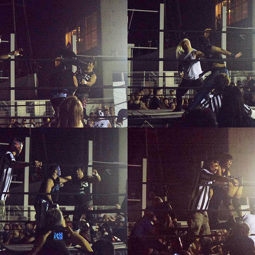 その後は大仁田劇場。本当は海のところで花火をあげたかったんだが消防からクレームが入ってできませんでした、すんませんと言っていた。