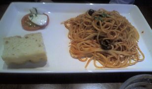 ランチはパスタ+フォカッチャ+付け合わせ+ドリンク で1000円。味は平均的なおいしさかな。
