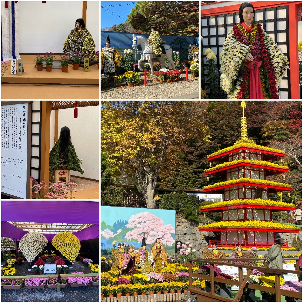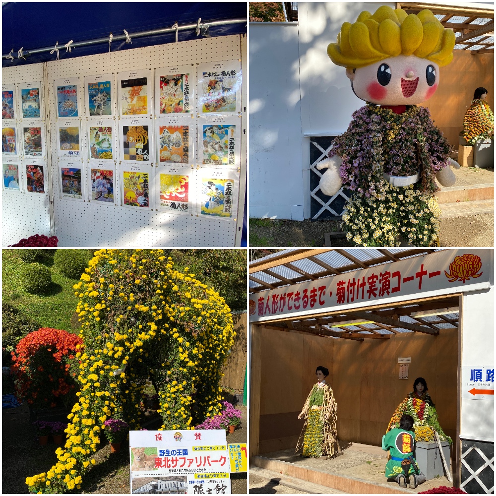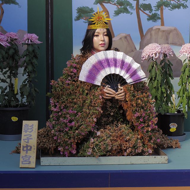 第65回 二本松の菊人形 Sights 2019.11.092019.11.10 2019年第65回「二本松の菊人形」のご案内 | 二本松市公式ウェブサイト テーマは「源氏物語」 マネキンがちょっとなまめかしい。髪の毛がパサつき気味で全部みだれ髪っぽい。時期的な問題もあってか菊が結構枯れてるのもまた良い。 菊の品評会と一緒になっているのは他のところも一緒だけど、菊人形9セット!さすが日本一を謳うだけのことはある。 歴代ポスターを見ていくと、80年代(西田敏行「おんな太閤記」あたり) から大河ドラマとのタイアップが中心になっていくことがわかり、そして、近年の「大河離れ」もわかるのだった。ステージでは菊人形の歌が披露されていた(!)。菊付け実演コーナー素晴らしい。