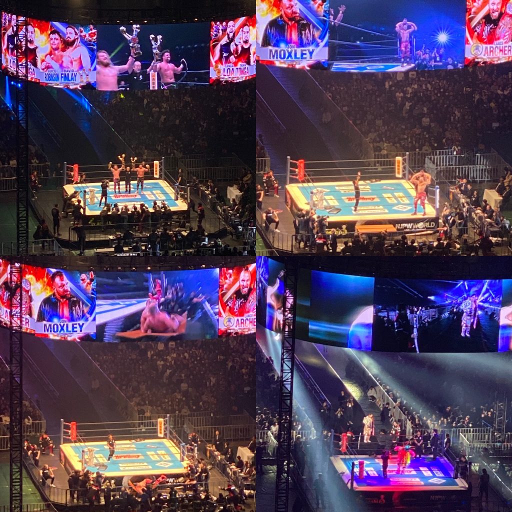 2020-01-04 NJPW 新日本プロレス WRESTLE KINGDOM 14 in 東京ドーム Pro-Wrestling 2020.01.042020.01.05 バンドリ!Presents WRESTLE KINGDOM 14 in 東京ドーム – 東京・東京ドーム 2020/1/4 | 新日本プロレスリング 1h前のダークマッチ開始時点でドームの外もすごい人だったし入場もすごい時間かかった。満員で文句なくここ10年くらいでは最高の入りのはず。ライガー引退試合1はリングアナがケロなど昭和感満載。元社長も帰還。佐野は昔の赤黒スパッツ。 モクスリーvsランス・アーチャー。おもしれぇ。ヒロムvsオスプレイはもう動きがとんでもなさすぎて。 オカダ飯伏も攻防が高度すぎてよくわからないレベルになってる。 そして翌日はオカダvs内藤になった