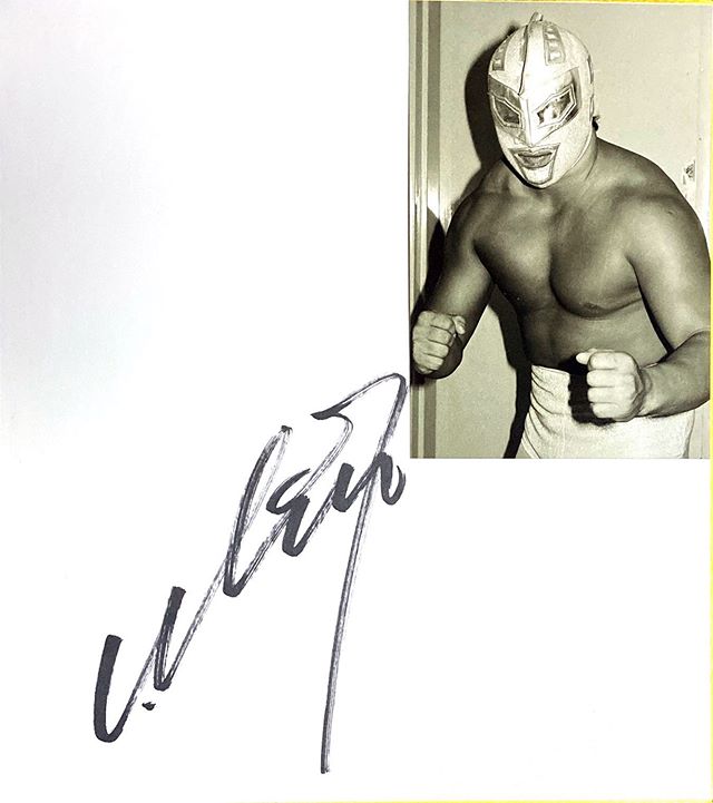 2020年の全日本プロレスオールスター展か、あるいはその前年のジャイアント馬場展かで入手した。このとき売店にジャイアントサービスのデッドストックらしきものが結構出ていて、ほかにカブキさんとかマイティ井上のサインもあったように思う。これと同じようにポートレートを貼り付けた色紙がいろいろとあったと記憶している。