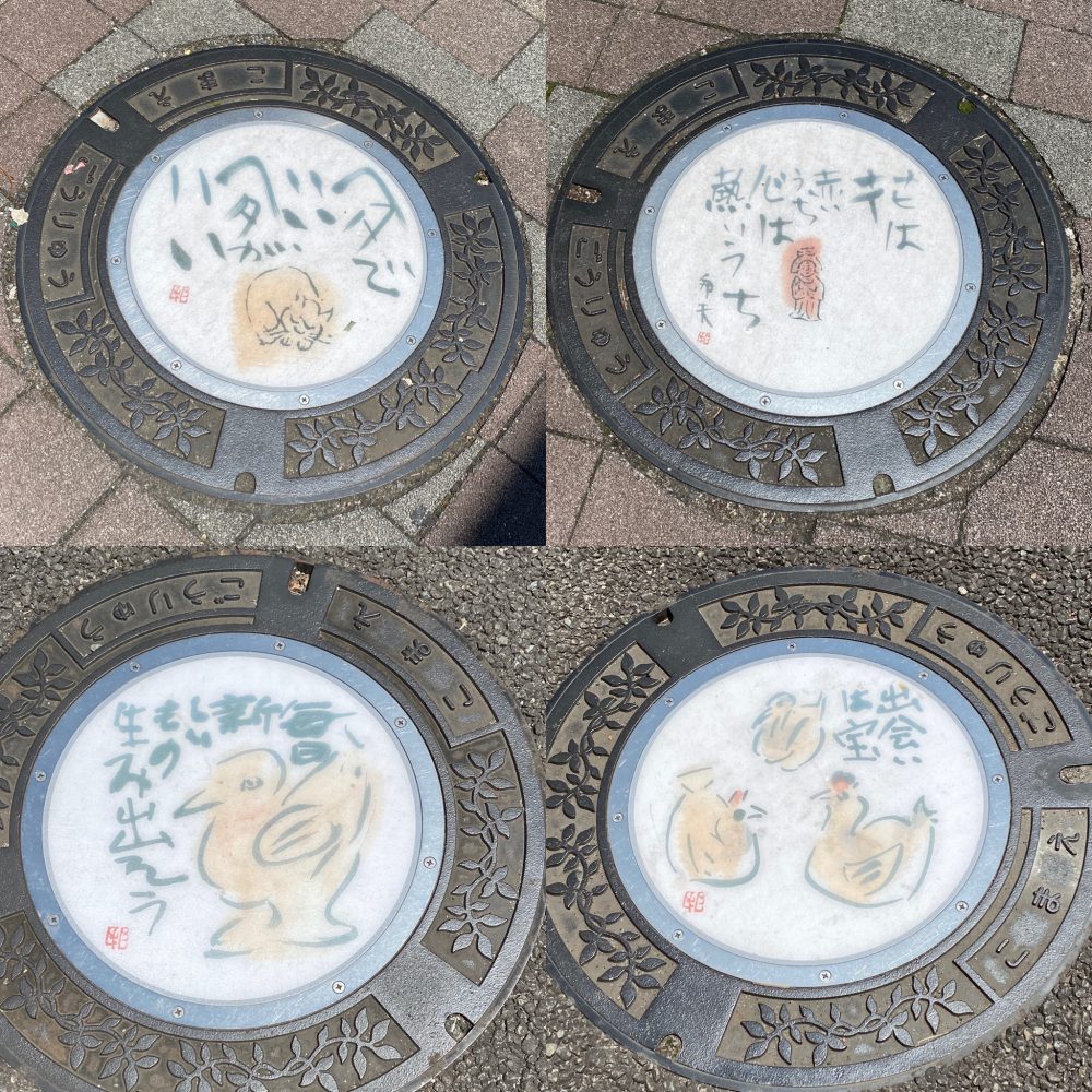 狛江駅前 絵手紙デザインマンホール Manhole 2022.01.122025.02.24 デザインマンホール – 狛江市役所 日本絵手紙協会名誉会長である小池邦夫さんがデザインした絵手紙デザインマンホールを、狛江駅駅前ロータリーの歩道を中心に15基設置しました。