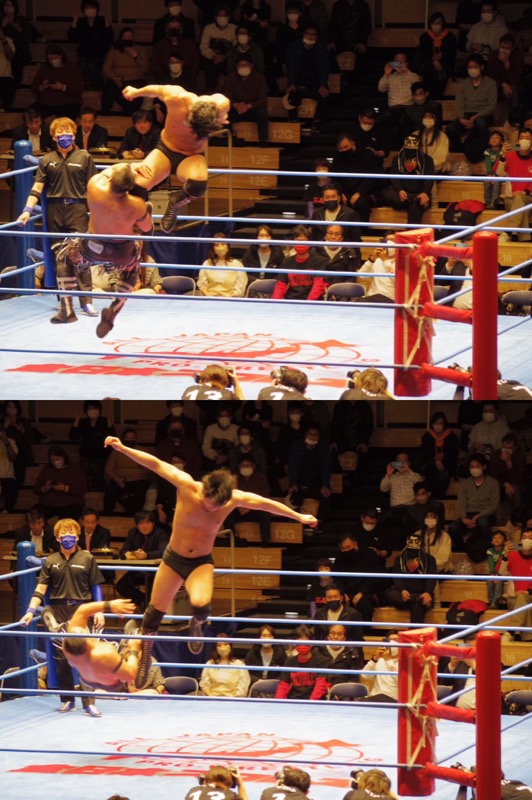 メインは#strongheartsの試合に全日本勢が完全に乗っかった感じ。結末も含め抜群のクオリティであった。