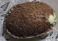 シュークリームなんだけど、皮がザクっパリっとしておりまして普通のシュークリームと違う。皮の味はそうですな、瓦せんべいにちょっと近い味がするように思いますな。