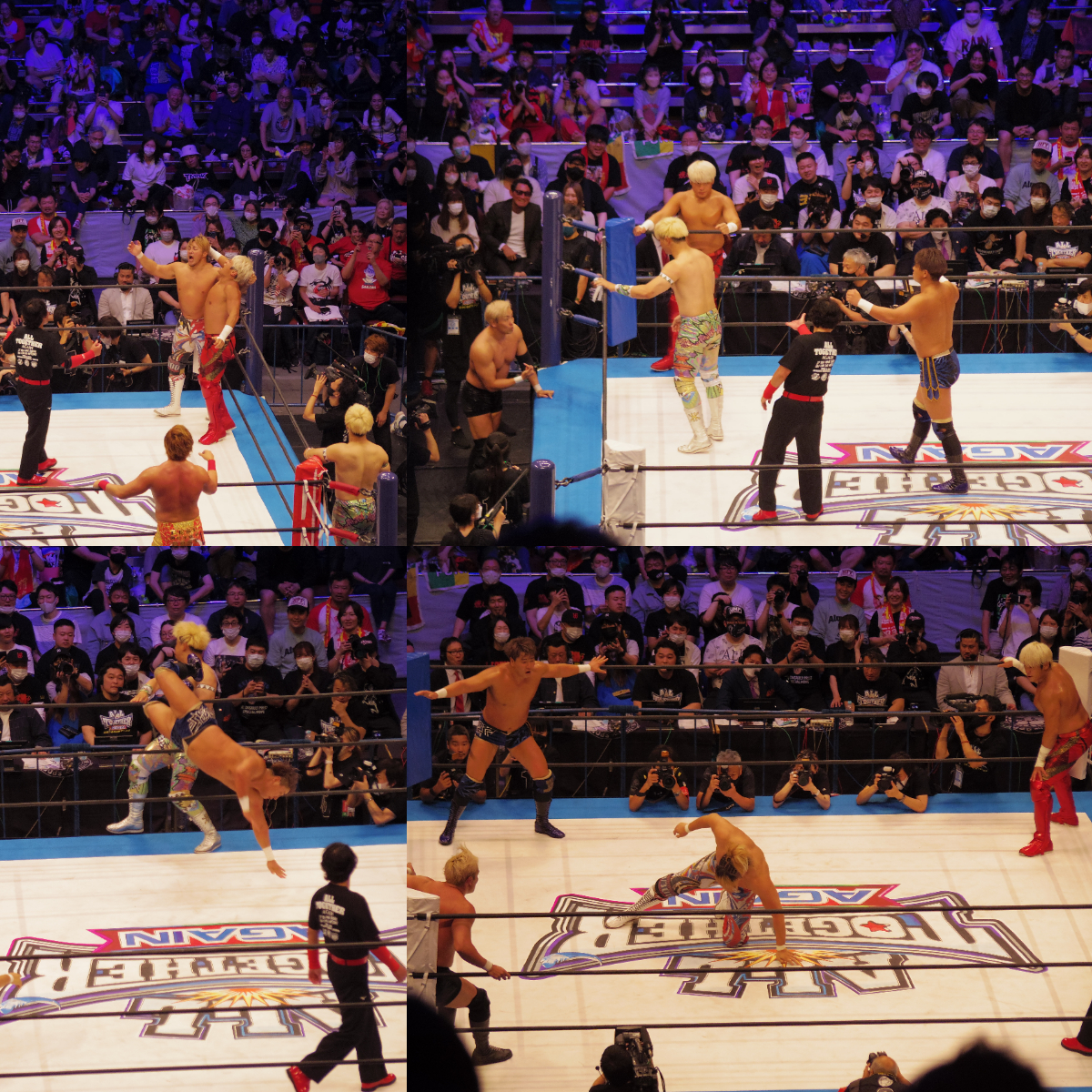 ALL TOGETHER AGAIN 元気があれば何でもできる! Pro-Wrestling 2023.06.172023.06.21 [新日本・全日本・ノア] 速報 6.9 ALL TOGETHER AGAIN:第0〜2試合結果 ザック&藤田vs.リッジウェイ&レガシー、石井&後藤&ヨシハシvs.北宮&稲葉&稲村、他 – 青空プロレス試合結果速報 特に印象に残ったシーン。ヒロムに振られて場外に飛んで行ったAMAKUSA。斉藤レイをぶん投げたジェフ・コブ。 週刊プロレス 2023年 06/28号 No.2249 [雑誌] 著者 : 週刊プロレス編集部 ベースボール・マガジン社 発売日 : 2023-06-14 ブクログでレビューを見る»