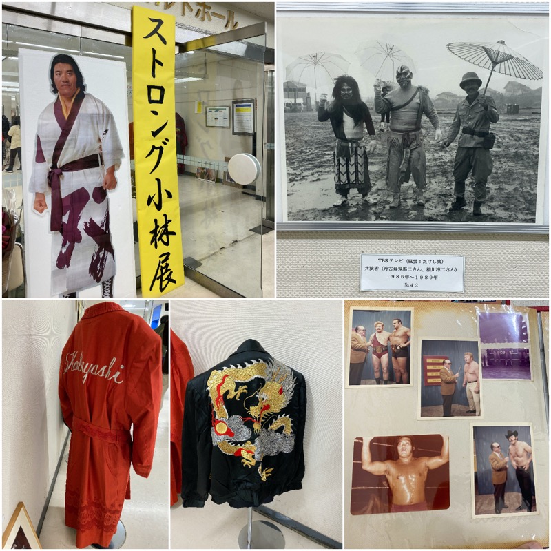 コスチューム類は点数はあまり多くない(自分の手元には残していなかったらしい)が、写真はかなり多く、国際-新日本-ストロング金剛としての芸能活動、と良い写真が多かった。「風雲たけし城」のオフショットも。