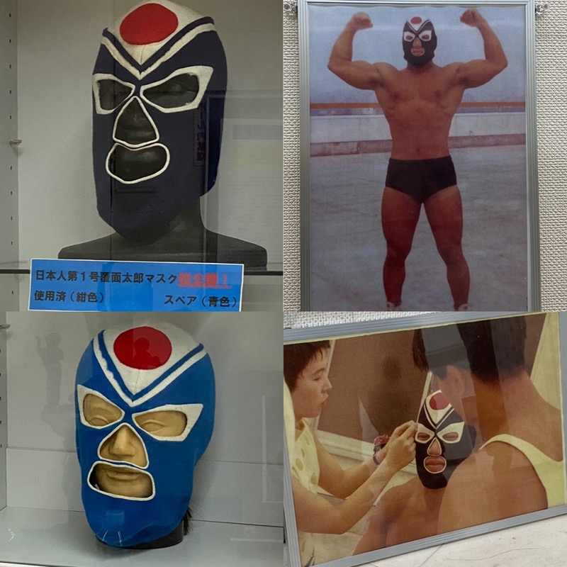 それから1967年デビュー時の覆面太郎。これが日本初のマスクマンなのだが、このマスクが見られたのは本当によかった。スペアでブルーがあったとは。