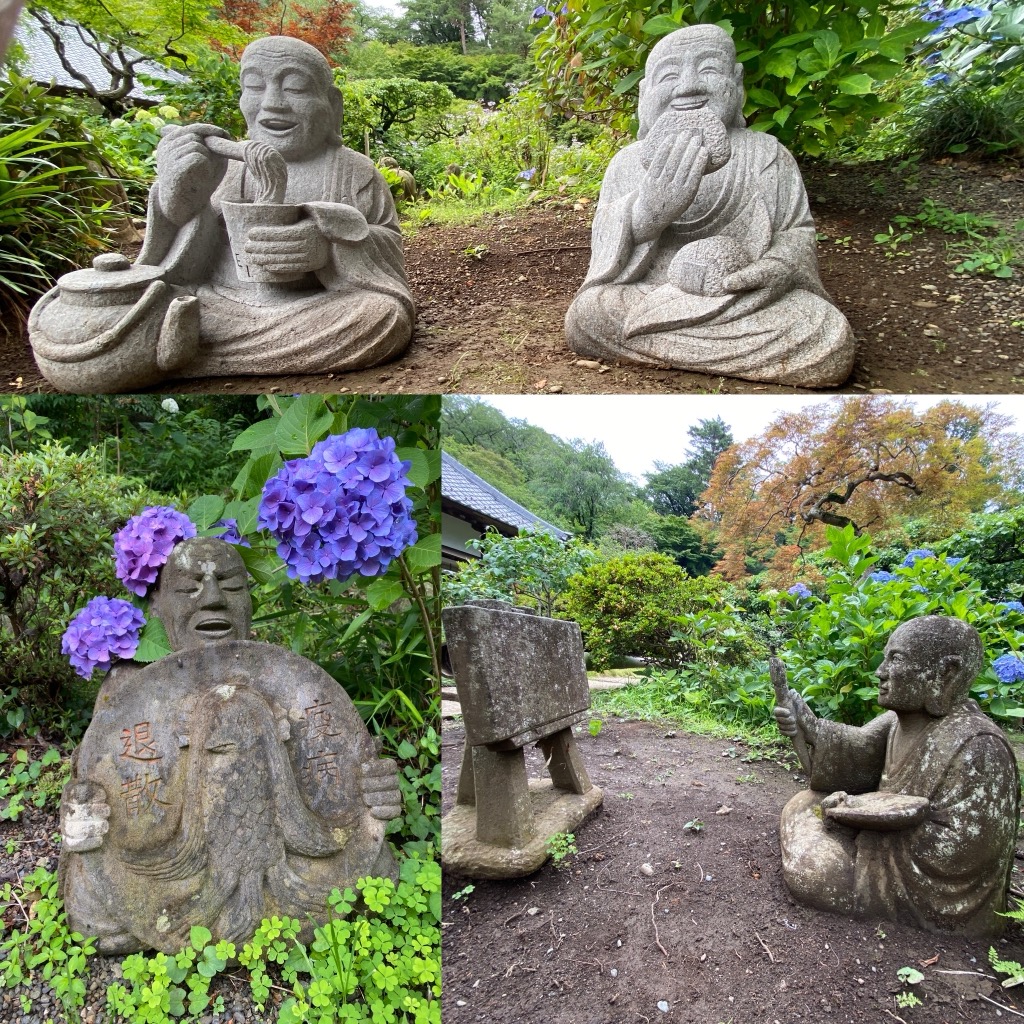 謎の羅漢さんとあじさいで有名なお寺。 観る | 一般社団法人 川崎市観光協会 - Kawasaki City Tourist Association お団子羅漢さんは見た記憶がない...明らかに新作のレコード羅漢さん(SP盤なの?)とカフェ羅漢さん(ケーキ...