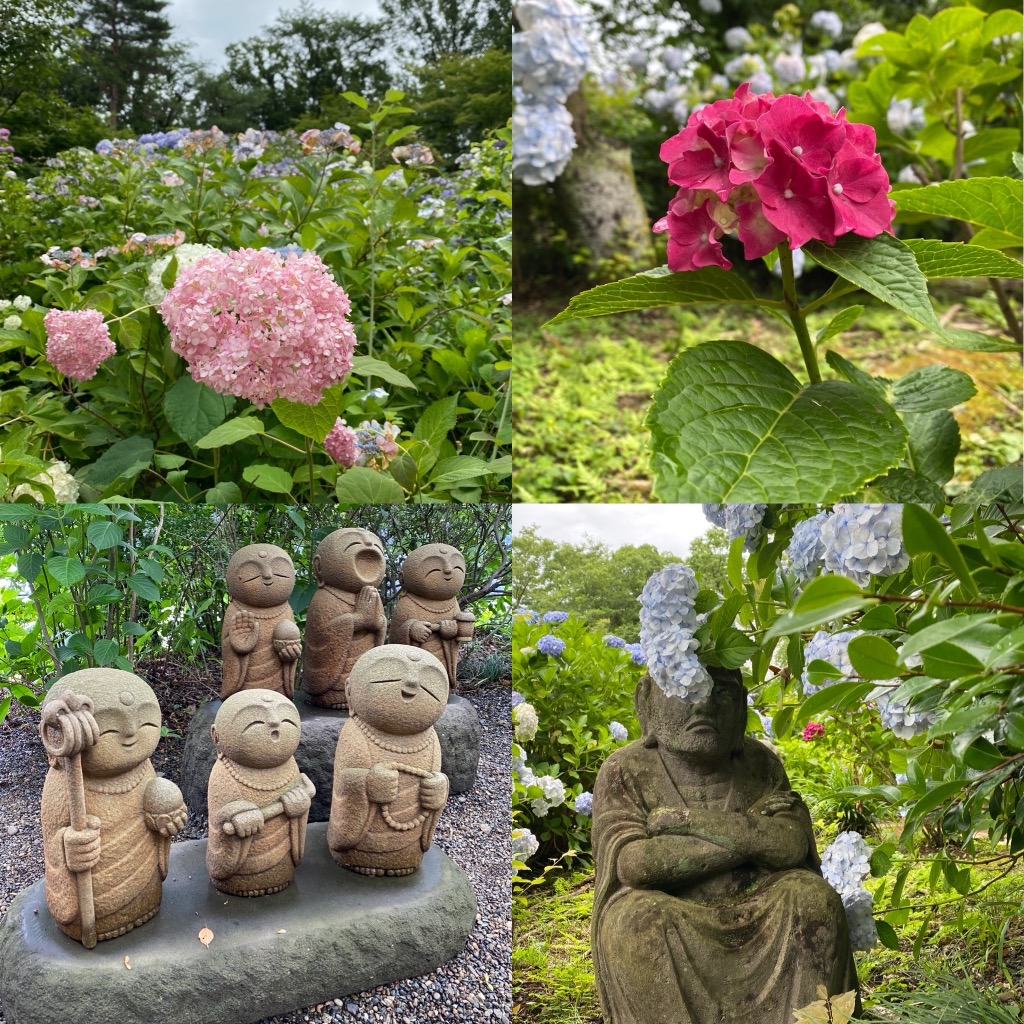 この寺は去年も行ったのだが"羅漢さん乱立"の寺としてより、あじさい寺として有名なのだ。ちょうどあじさいシーズンだし、新作が出てるかもしれないので行ってみた。あじさいは境内があまり咲いていなくて参道の方が咲いていた。ちょっと時期外したかな。写真は基本的に去年...