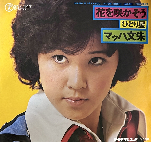 1975年、テイチクレコードからのデビューシングル。マッハ文朱はこれが出たくらいのタイミングで全日本女子プロレスのWWWA世界シングルを戴冠。が、翌年には引退してしまう。