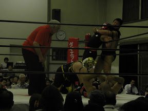 ・藤波に衰えは見られず。やったのはドラゴンスクリューとドラゴン同士討ちくらいだったけど。最後は初代の崩れジャパニーズレッグロール&トルコ高速カウント。しょっぱいっすw