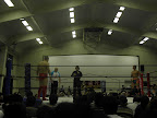 ・リングアナはケロちゃん。レフェリーには和田良覚。スポット照明は無いので会場全体が明るいまま。