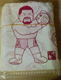 健介オフィスロゴも看板のすみに小さく入っている。グッズもわずかではあるが置いてあった。