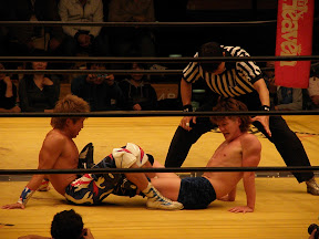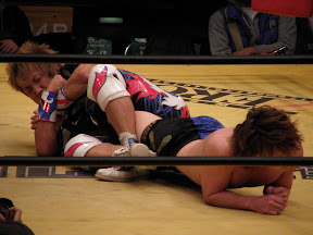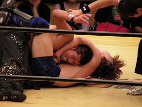 大原は徹底した腰攻め。理にかなった、という感じ。幅の広い選手だと思う。ハッスルでTAJIRIあたりから色々学んだんかなぁと思わせる。
