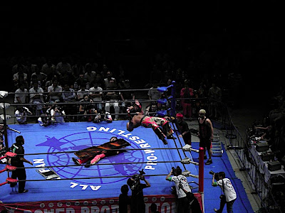 今日のムタは 机の上への(ほぼ自爆)ムーンソルト、コーナーの机に投げられる(!)などいつもより動いていた。復帰戦だし、もっと省エネでくるかと思ったんだが、膝大丈夫なんだろうか。そしてKENSOが勝利。異例だ。KENSOしばらく続くのか。