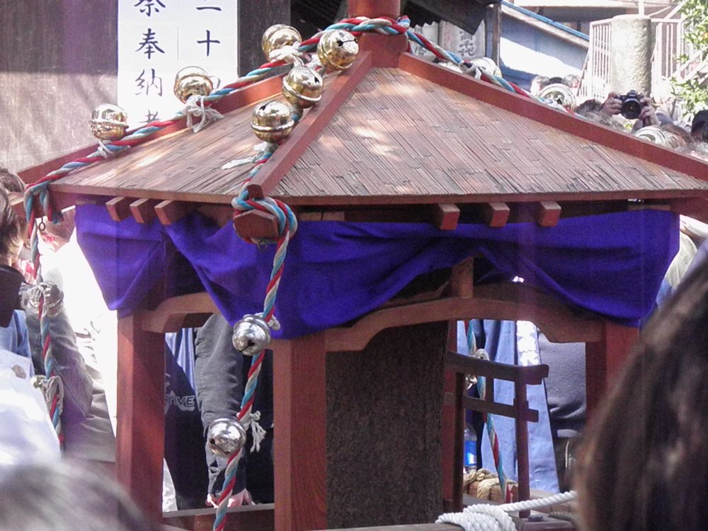 神輿は三つあり、それぞれにご神体がニョッキリと載っている。ピンクのやつは「エリザベス神輿」。いわゆる神輿の感じではないんだが、ちゃんと神輿として認定されておるようで。やっぱりビジュアル的には一番目立つ。。
