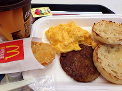 ビッグブレックファスト Foods 2014.04.29 スクランブルエッグは味付けがなく自分で塩コショウを振る前提らしい ソーセージパティは単体で食べるには塩辛い ストロベリージャムはKRAFTのだ ぁぁ