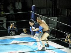 鈴木みのると飯塚の息はぴったり。思えばみのるが新人時代 先輩すら蹂躙して暴れてたのに対し敢然と立ち向かった唯一の先輩が飯塚孝之(当時)だった、と数年前みのるがどっかの本で言ってた。