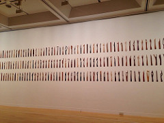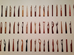 “tongue”は数百種類あって、木製。塗装などはしていなくて木の地の色。tongueの形状については 音より前にまずは形があって、それを弾くとどんな音が出るか試行錯誤する、ってアプローチであるらしい。いわゆるミュージシャン的な発想ではない。