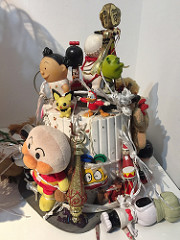 ・帽子上の各種人形は糊で付けているが、紐で結わえ付けていることもある。