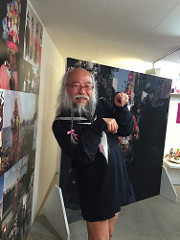 今日のトークは宮間英次郎本人と、今回のキュレーター 畸人研究学会 海老名ベテルギウス則雄、都築響一 の三氏。