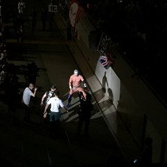マイバッハのパートナーは「マイバッハ・ブルージャスティス」だった。さすまたまで青くなっていた。途中でマスク取ったのはおそらく白目をやりたかったからだと思われる…