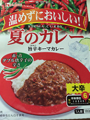 二種類のうち大辛の旨辛キーマカレーの方をいってみたが、なかなか。赤唐辛子の輪切りが結構な量 妥協なくぶちこまれていた。。