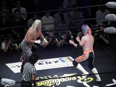 3職人+1変人のタッグマッチ。天龍プロジェクトの流れで結成されていた小川良成カシン組はやはりグチャグチャw 破綻寸前みたいに見えてキレイに終わるあたりが見事。