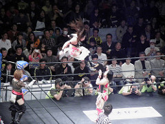 第二試合は仙女の試合。カサンドラ宮城は怪奇派かと思いきや、ミサイルキックのフォームは往年の北斗晶を彷彿とさせる(この写真は違う)。前半は良かった。