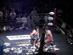 長州、石井の師弟コンビに大日本河上と齋藤彰俊。河上、コンディション悪いみたいなんでアレだが、石井ちゃんとでは一発の重みがだいぶ違うように見えてしまう。頑張ってたけどね。