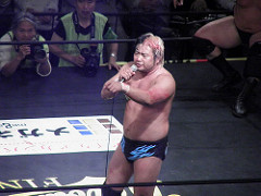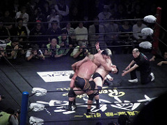 その後はそれなりに試合っぽくなる。藤田、やたらコブラツイストにこだわるが、パートナーを助けるでもなくやるので変な感じに。