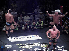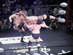 大日本の2人が押し込めて何とか正常化。場内「大日本」コール