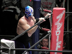 ミスティコ、試合中にオーバーマスクを取ると中はドラゴンリー(?)とのハーフかつ口開きのマスクだった。