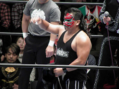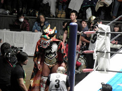 試合後、ドラゴンリーの抗争相手、カマイタチ(高橋広夢)が登場。日本帰ってきてたのか。