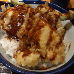てんや風 ローストビーフ天丼 Foods 2016.06.10 てんや風 ローストビーフ天丼 ~ドミグラスソース | 期間限定 | 店内メニュー | 天丼てんや タレじゃなくてデミグラスソースなので、あまりてんやっぽくない。 ポテサラ天もついてきた。。 むぅ…