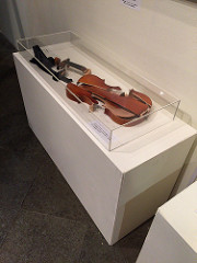 2006年の追悼パフォーマンス”Farewell NJP”で坂本龍一が破壊し、ステージ内外を引きずり回したバイオリン…