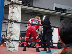 ZAPはTの人のようであった。極悪同盟セコンドでクレーン・ユウと影かほるまで来ていたのには笑ってもうた。しかし、ダンプさん、歩くのがままならない状態で。。