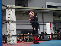 一度リングに入ったらコーナーで待機。晩年の馬場さんのような。
