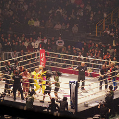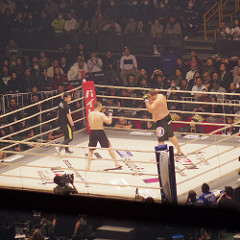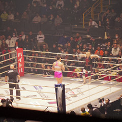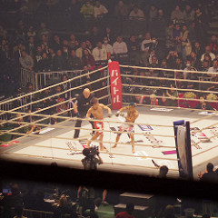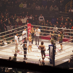 坂田亘のセコンドにはTK(リングス時代の同期だったのね)。意外と頑張っていたのではないかと。。1R10分もたせたから。