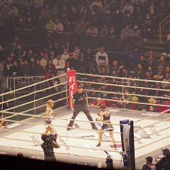試合後にはなぜか堀田と神取もマイクアピールをしたところで、スターダムのアルファ・フィーメルさんが乱入し、ギャビ・ガルシアと小競り合い。神取さんも激昂し何が何やら。結構グダグダ。プロレス側が損するパターン。