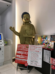 ツッコミ如来 と 歴代の来場者向けいやげ物展示。