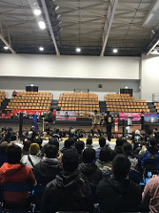 エスフォルタアリーナ八王子(八王子市総合体育館)、やはりここも非常に大きくきれいな体育館。メインアリーナとサブアリーナがあって、メインの方ではプロバスケリーグをやってたみたい。
