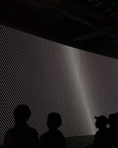 空間内では複数の展示の音が同時に聞こえている。