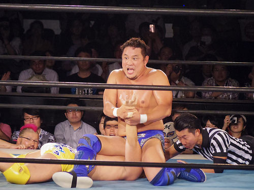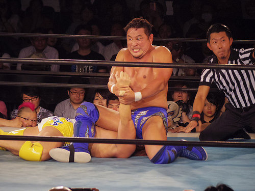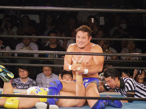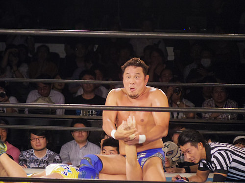 永田さんの腕固め Pro-Wrestling 2017.07.082023.08.24 NJPW 新日本プロレス LION’S GATE PROJECT7 @ 新宿FACE | Cafe de Shrimp の続き。 この日の永田さんは白目にはならなかった。黒目式。