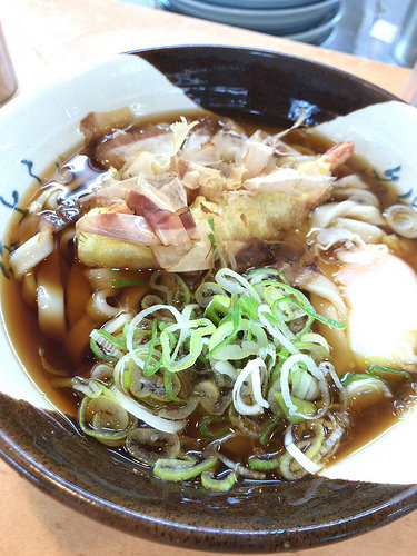 えび天たまご入りきしめん。きしめんorそば なのか!