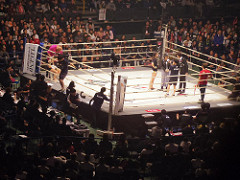 1時間近い実質的な休憩時間(テレビの生中継があるため。毎年こんなだ)にPRIDE1の高田xヒクソンが流れていた。。