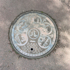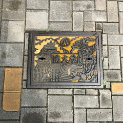 100周年記念デザインマンホールは市内100箇所にあるらしいが、見つけられなかったので展示品を…