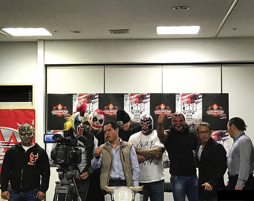 後楽園ホール展示場。10/9新木場と10/10後楽園に向けた記者会見。
